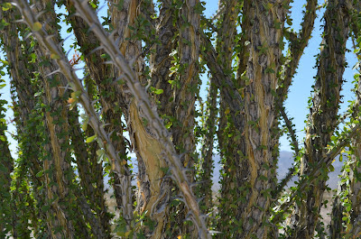 Besides the Joshua Trees (named by Mormons who were traveling from the Mexican/American War to Utah after the war was over), these were probably my favorite plant in the park. It is an Ocotillo and is not a cactus. This is a close up view of the leaves that are just growing without stems from the branches.